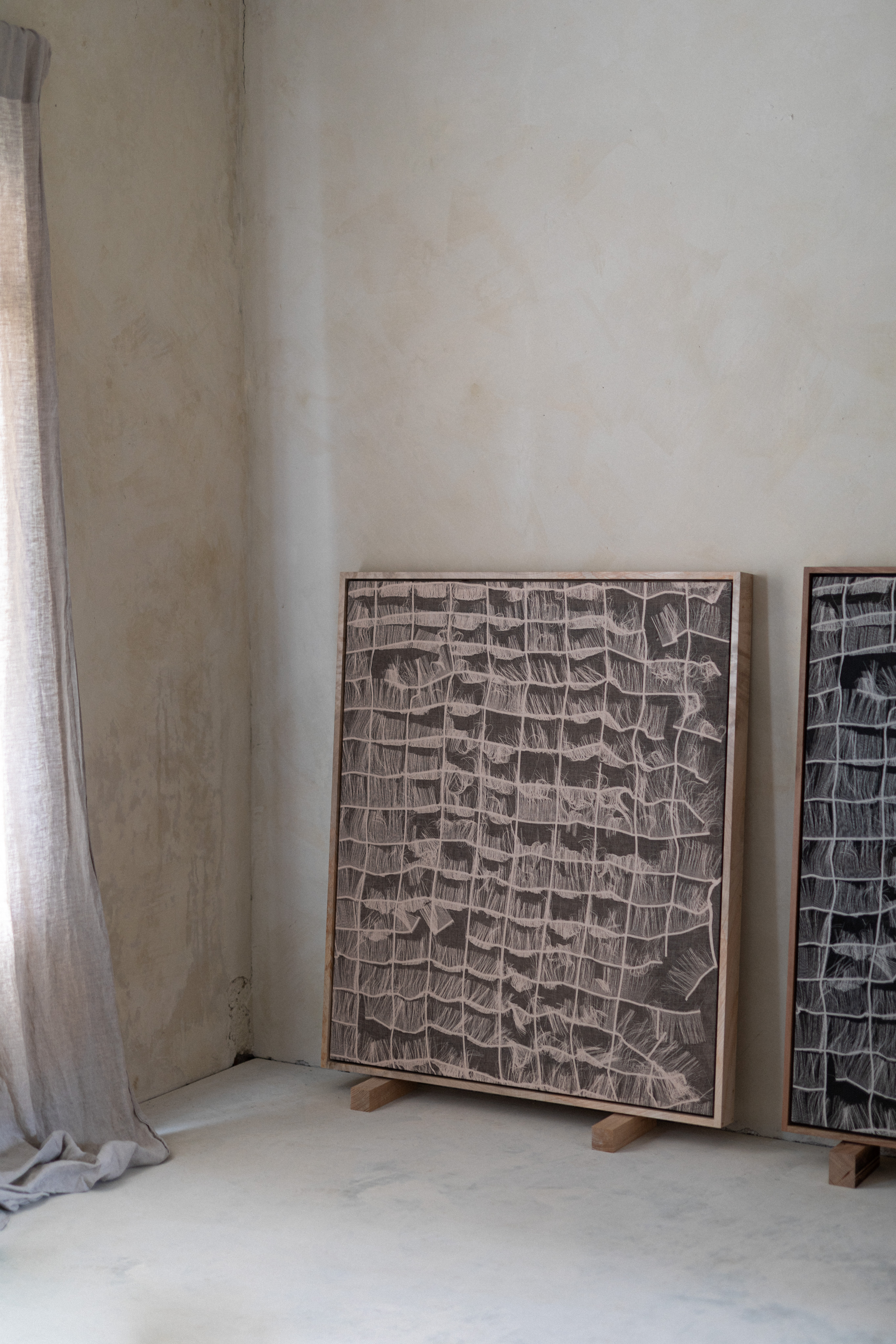 Analogue print of paper threads onto Belguim linen